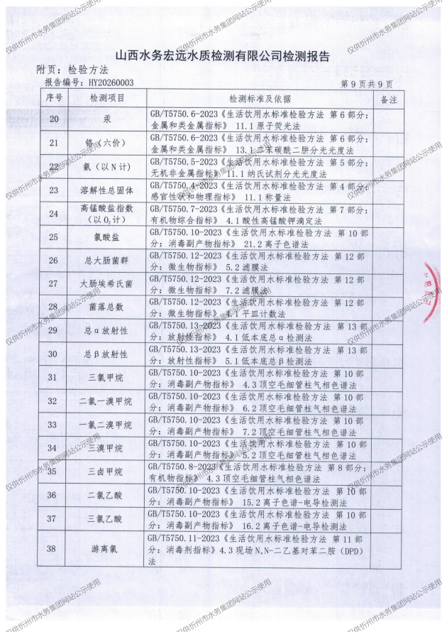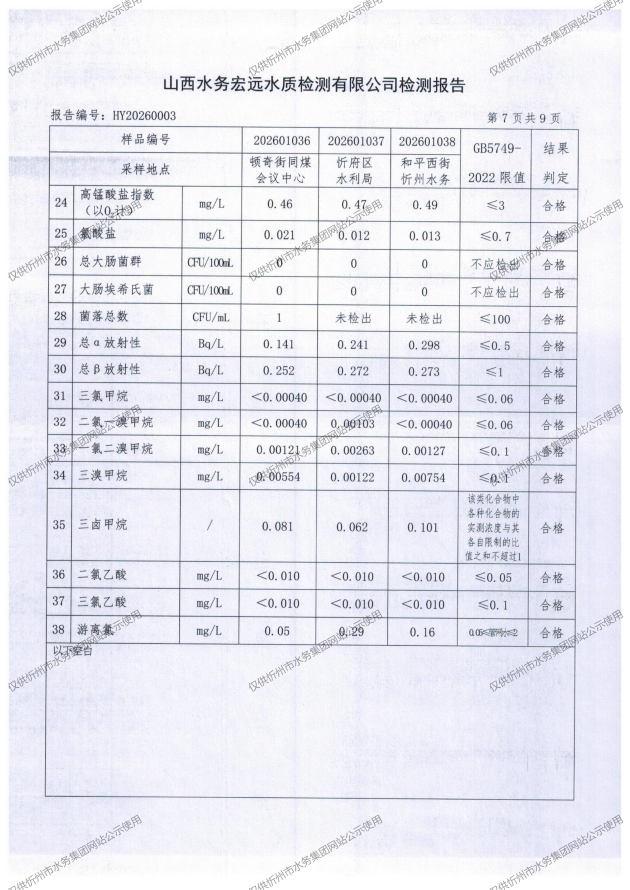 忻州城區(qū)公共供水水源水、出廠水、管網(wǎng)水、管網(wǎng)末梢水2026年1月份水質(zhì)信息公示